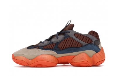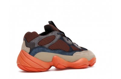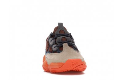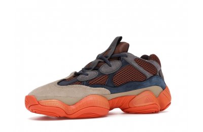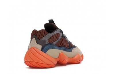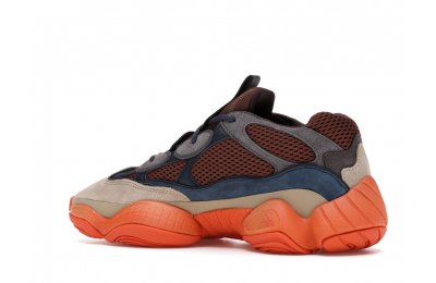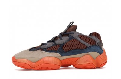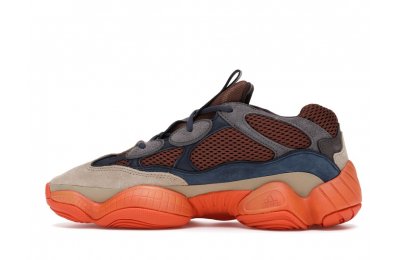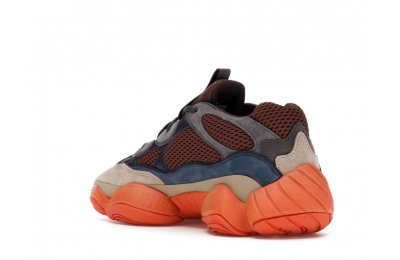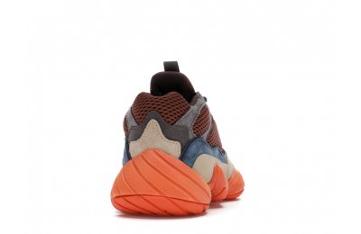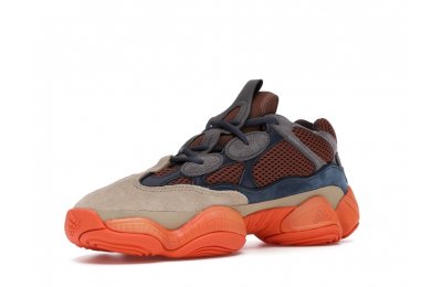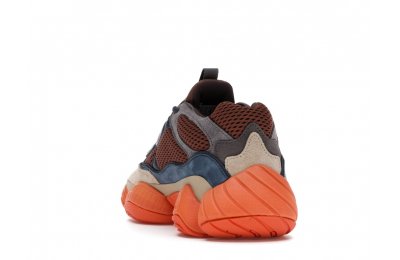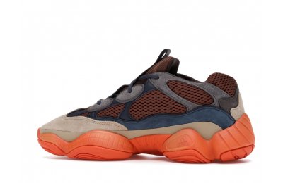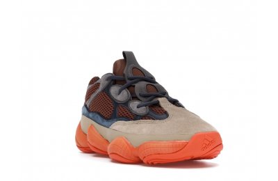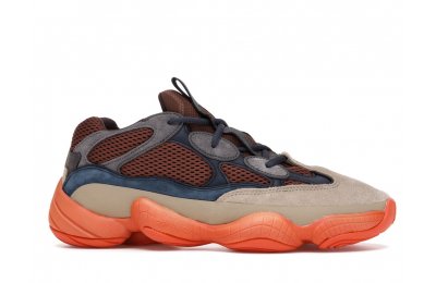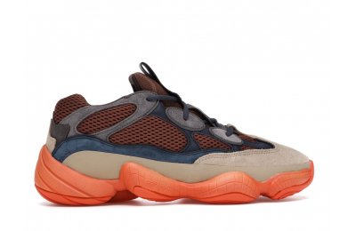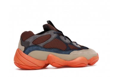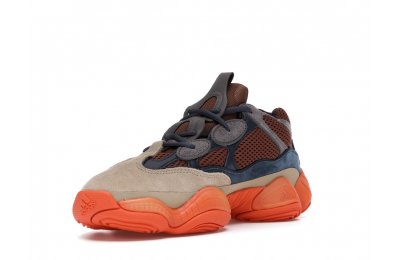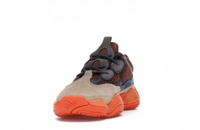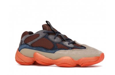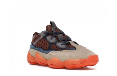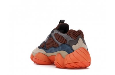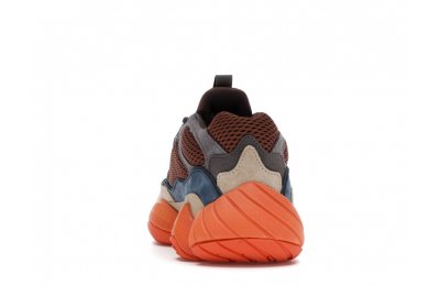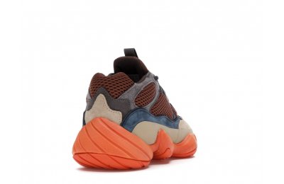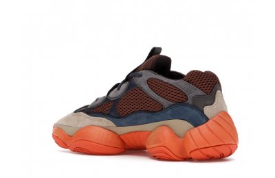 The adidas Yeezy 500 Enflame arrives in a tonal-brown, dark blue, and orange color scheme. Its upper is constructed of mesh with leather and suede overlays throughout the silhouette. To complete the design, an orange AdiPRENE sole offers premium cushioning.