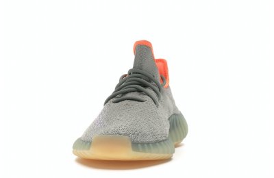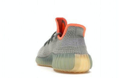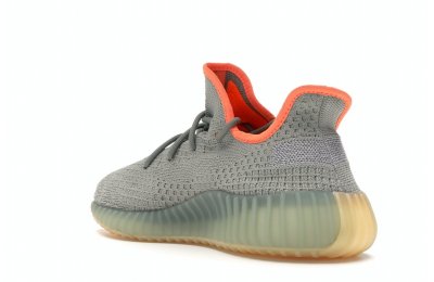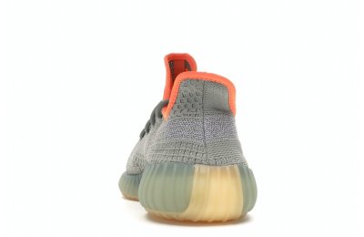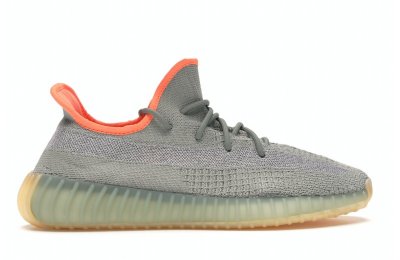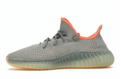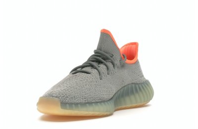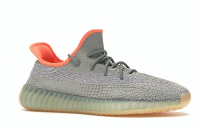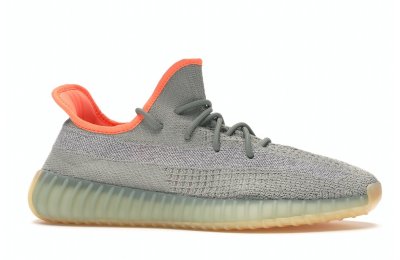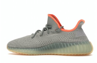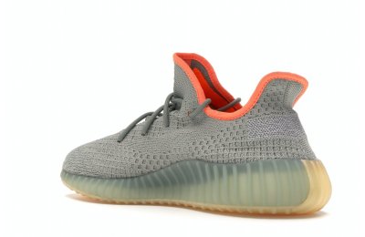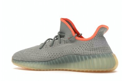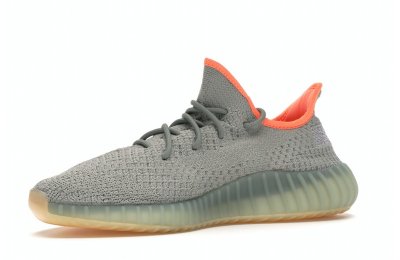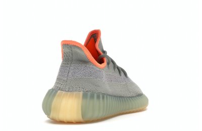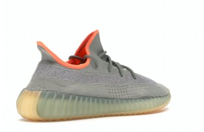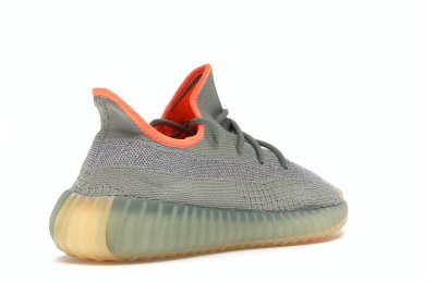 This Yeezy 350 V2 is composed of a desert sage Primeknit upper with a tonal side stripe. A translucent Boost cushioned sole and orange interior completes the design..