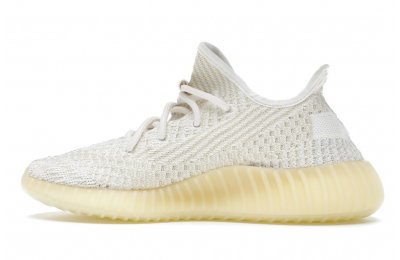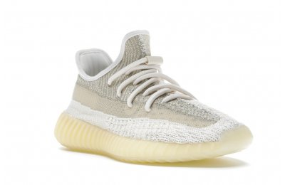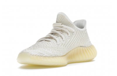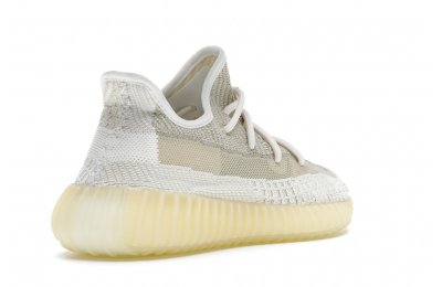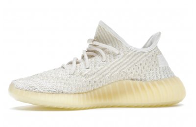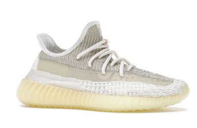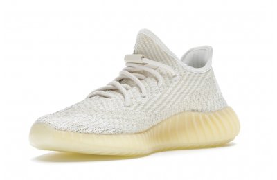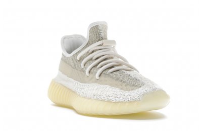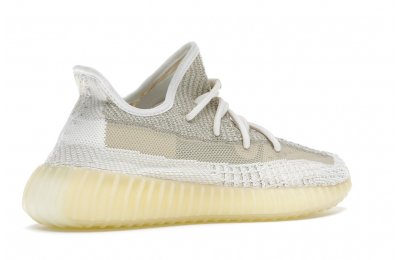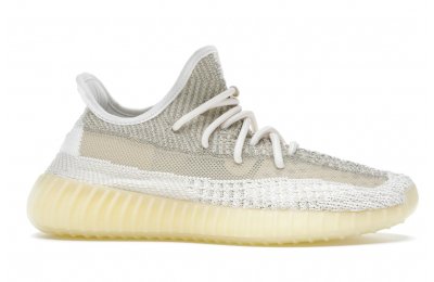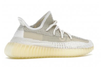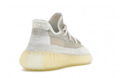 The Yeezy Boost 350 V2 Natural is reminiscent of the 350 V2 Cream that released in 2017. Its upper is mostly white, but instead of a monotone look, hits of light grey on the Primeknit upper give this design an identity of its own. A yellowed translucent Boost sole, a see-through side stripe, and traditional rope laces add the finishing touches to this most recent addition to the 350 V2 collection.