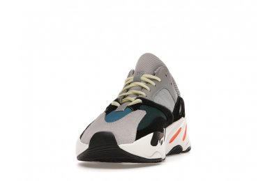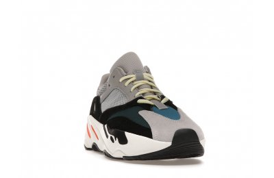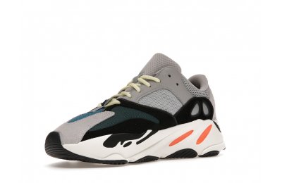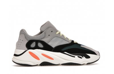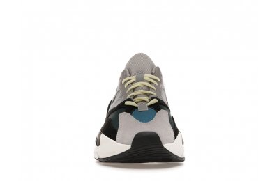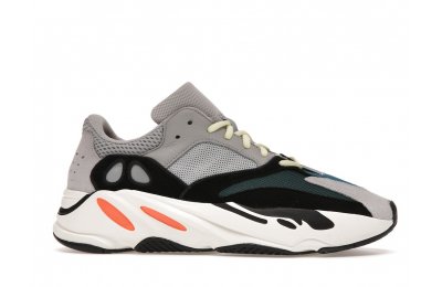 The Yeezy 700 Boost Wave Runner is the shoe that led Yeezy's pivot from a sleek, minimal aesthetic to a chunky, 90s inspired one. This was the gateway sneaker between knit runners like the 350 and the grungy skate look of the 550. The Yeezy 700 Wave Runner features a grey mesh and leather upper with black suede overlays and teal mesh underlays. At the base, a thick Boost sole and contrasting hits of orange complete the design.