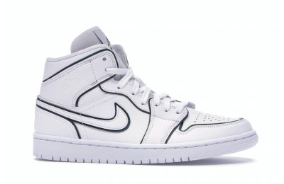 The Air Jordan 1 Mid Iridescent Reflective White W is a pair of all-white mid-top sneakers.Each shoe features a leather upper base, a perforated toebox, iridescent trimming that lights up in the dark, contrasting hits of black, a Nike Swoosh logo, and a tonal Wings motif on the collar. This women's Air Jordan 1 in reflective white boasts a cushioned midsole for, a rubber outsole patterned for underfoot traction and AIR technology.