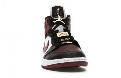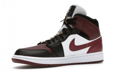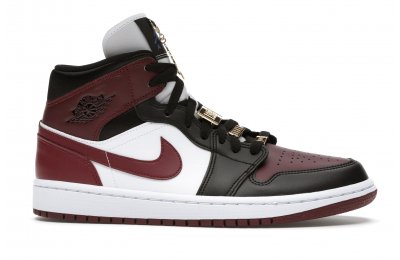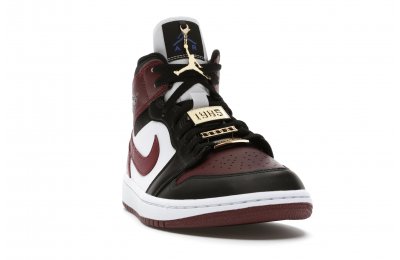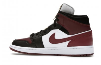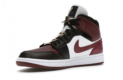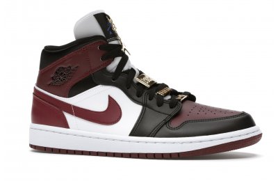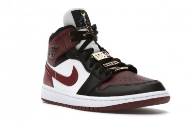 The Women's Air Jordan 1 Mid SE Black Dark Beetroot features careful stitching, high-contrast color blocking, and incredible attention to detail. Gold-tone pendants grace the laces of this shoe, setting it apart from the competition. The upper of the Women's Air Jordan 1 Mid SE Black Dark Beetroot displays a unique Black/Dark Beetroot-White colorway.