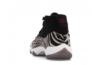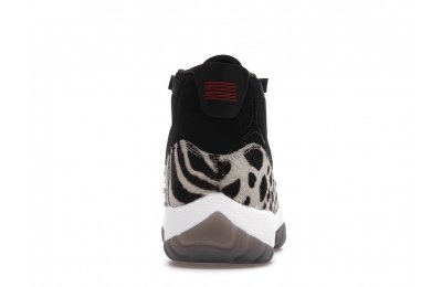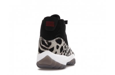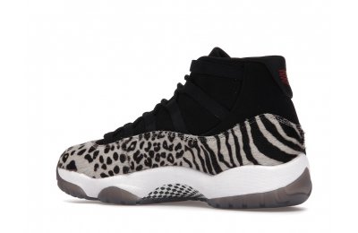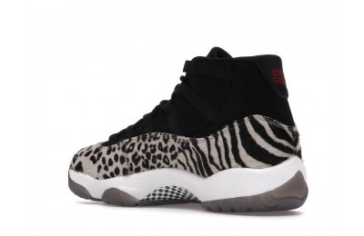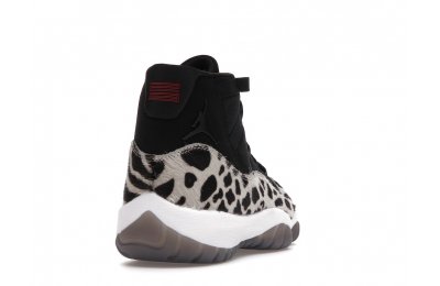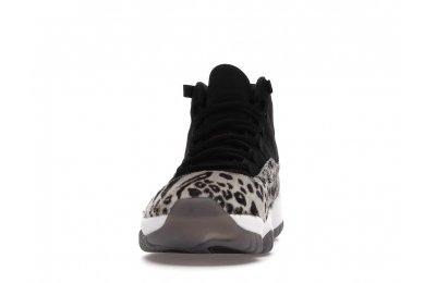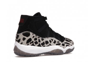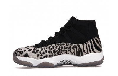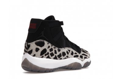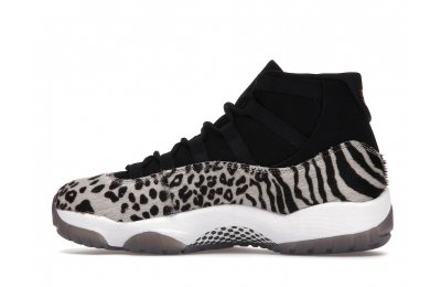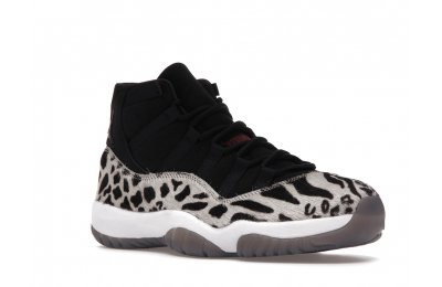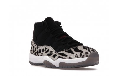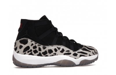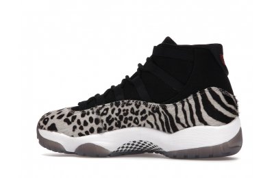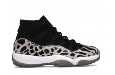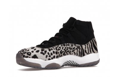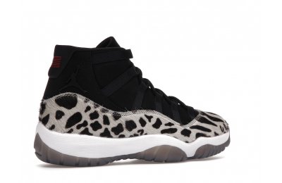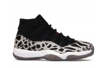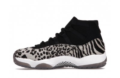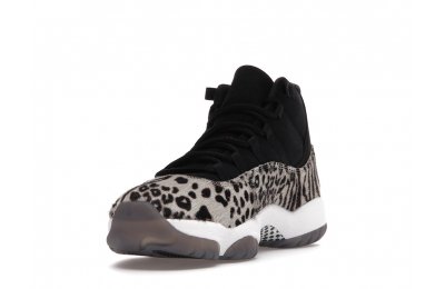 The women's exclusive Air Jordan 11 Animal Instinct (W) features a muted black Durabuck upper with animal print faux fur overlays. Metallic Jumpman logos and semi translucent outsoles add key elements true to the origins of the Jordan 11 design.