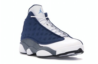 This Jordan 13 Retro consists of a navy mesh and white leather upper with flint grey suede underlays. A Jumpman holograph on the ankle, 3M detailing throughout the upper, and Carolina blue branding on the tongue completes the design.