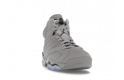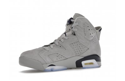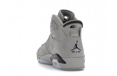 The Air Jordan 6 Retro Georgetown 2022 was made available in the signature colors of the Hoyas team.This Retro Air Jordan 6 legacy silhouette makes use of a gray suede upper with perforated detailing and a Huarache-like inner sleeve. Contrasting navy accents make their way to the heel tab, lace locks, and Jumpman branding hits embroidered on the tongue and back heel. The sneaker rests on a two-tone polyurethane midsole, featuring a visible Air-sole unit in the heel and a translucent rubber outsole underfoot.