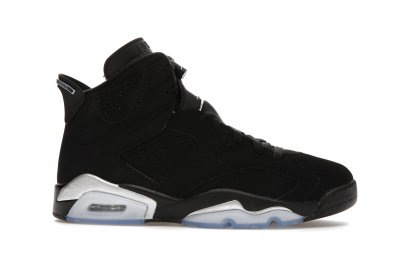 The Air Jordan 6 Retro Metallic Silver is crafted from a tumbled leather, synthetic nubuck and synthetic textiles, with a color palette of black and metallic silver.This Retro Air Jordan 6 comes in a black/metallic silver-chrome colorway. The sneaker has a mid-top mounted on a black polyurethane midsole, highlighted with metallic silver accents and supported by a translucent rubber outsole. The shoe has a branding of silver Jumpman on the lace guard. It also has a windowed tongue, lace locks, and a spoiler-like heel tag.