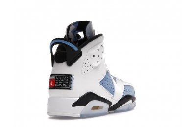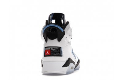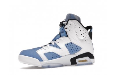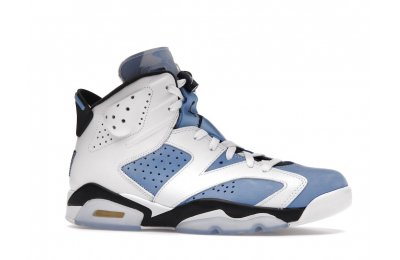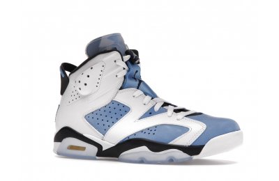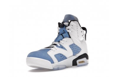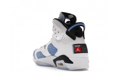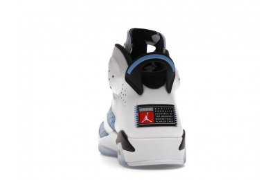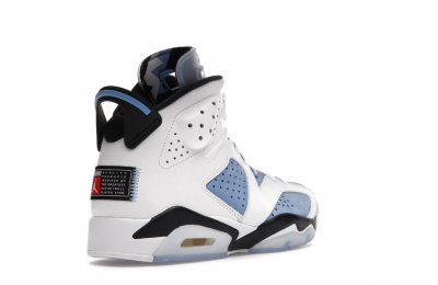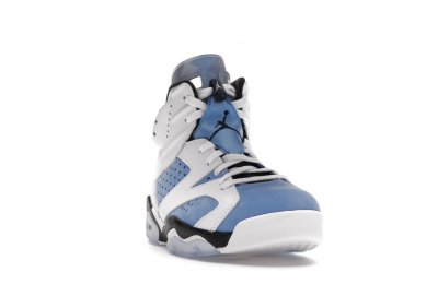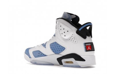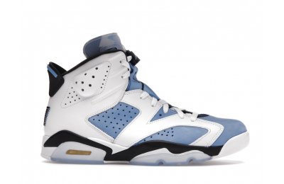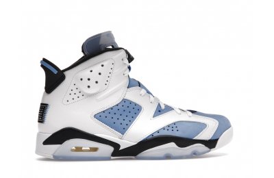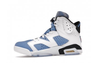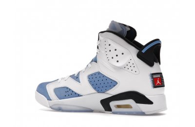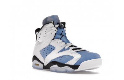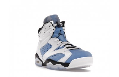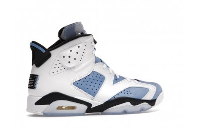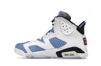 Constructed with University Blue Durabuck and white leather, the Air Jordan 6 Retro UNC White utilizes color blocking reminiscent of the renowned Jordan 6 Carmine. Hits of navy blue on the tongue and midsole integrate UNC's lesser known school color. At the heel, a Jordan Team patch nod to the jock tags that are stitched to the bottom of UNC's uniforms. From there, an icy semi-translucent Air sole completes the design.