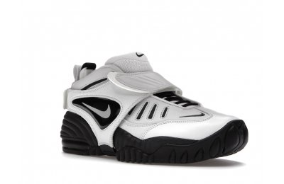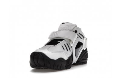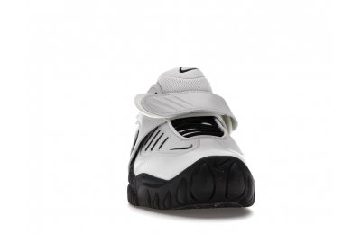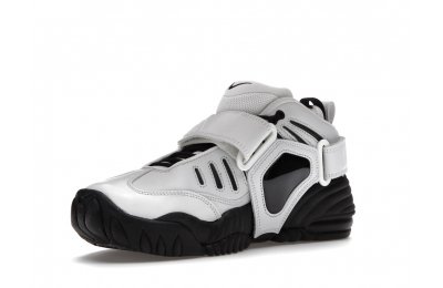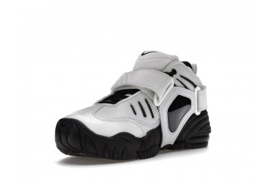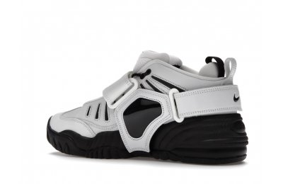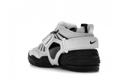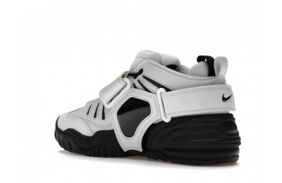 The Nike Air Adjust Force AMBUSH White arrives with a classic 1990s crosstrainer look with a white Durabuck construction, mini-Swoosh toe emblems, and a dual-strap harness that secures both the forefoot and heel. A bubbled panel in blaack on the lateral side features a Nike Swoosh. From there, AMBUSH labeling on the heel strap and insole completes the design.