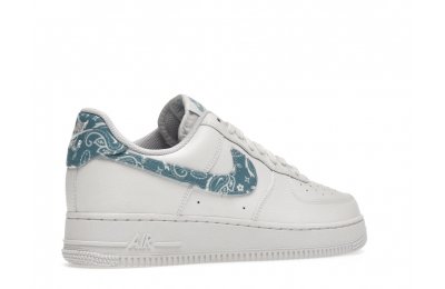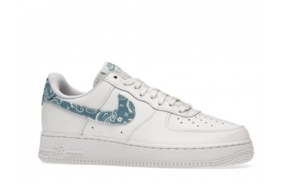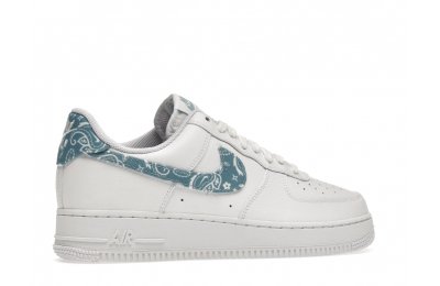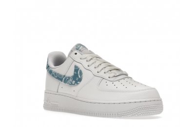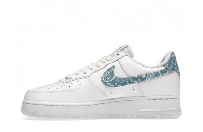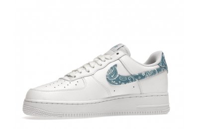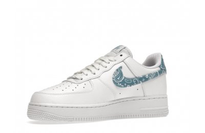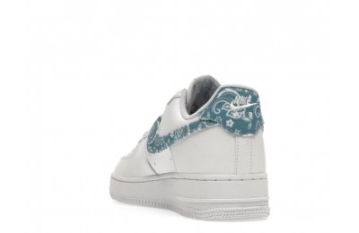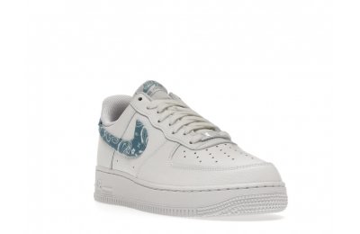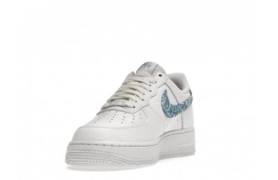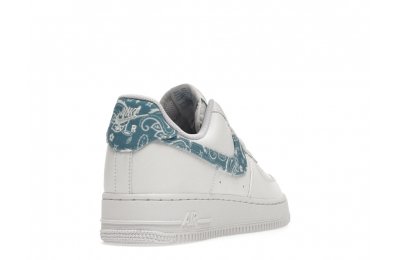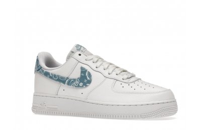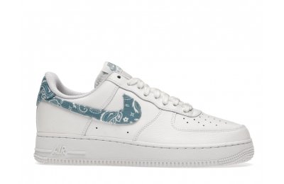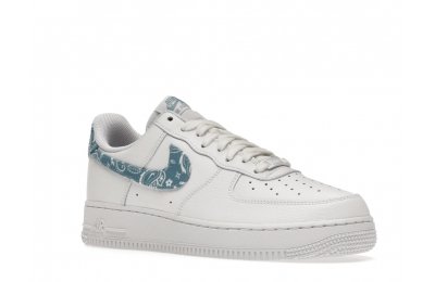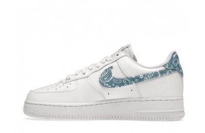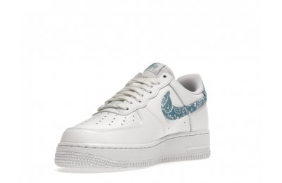 A classic bohemian print takes center stage on the Nike Air Force 1 Low 07 Essential White Worn Blue Paisley (W) for women.