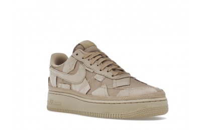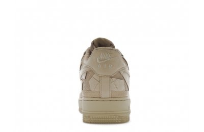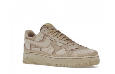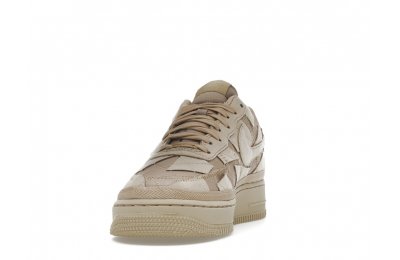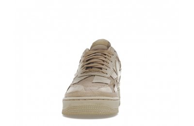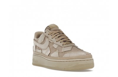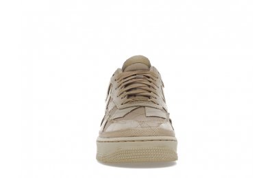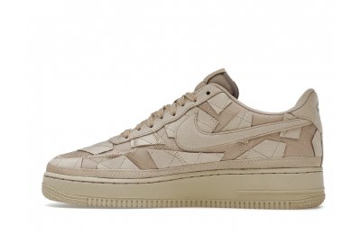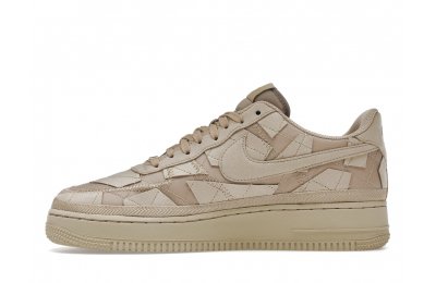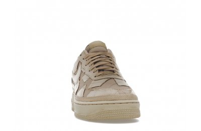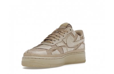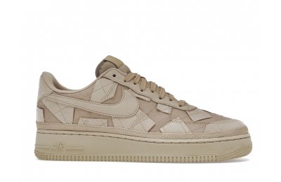 A one-note tan hue in the upper patchwork, which combines a textile base with irregular suede scraps, is featured on this Low Air Force 1 model. Billie Eilish’s Blosh logo appears on the molded laces while dual Nike and Eilish branding appears on the sock liner, which is made from recycled foam scraps. The shoe’s monochromatic theme continues throughout the outsole. Nike´s Air logo can be found on the tongue tag and heel tab. AIR units are included on the soles.