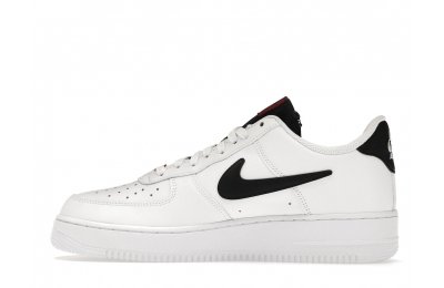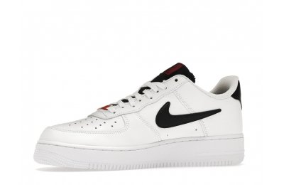 This simple yet stylish Nike Air Force 1 Low Carabiner Swoosh Red was created with utility in mind. This shoe features a white sole and base, with patches of black found on the tongue and heel. The Nike swoosh symbol has a different and modern look, with a black base and a carabiner overlay in the same shape as the logo.