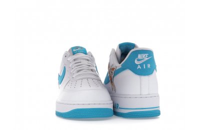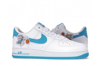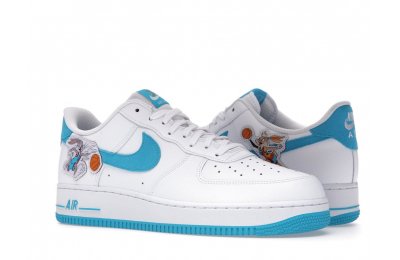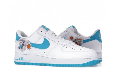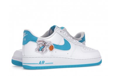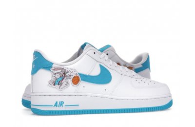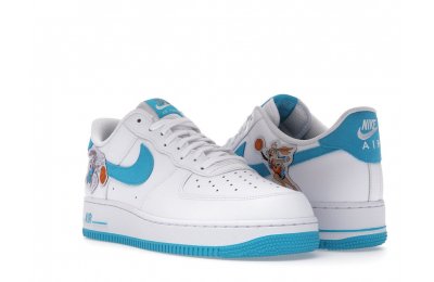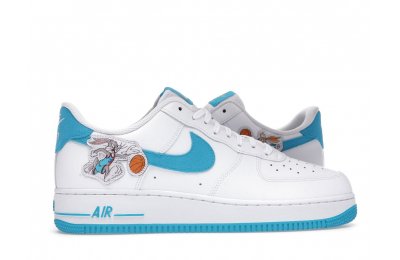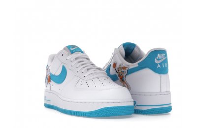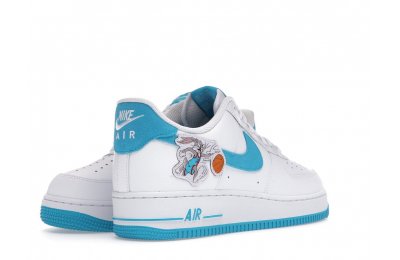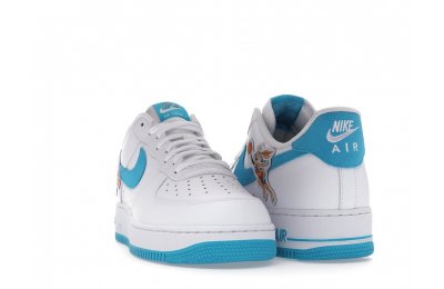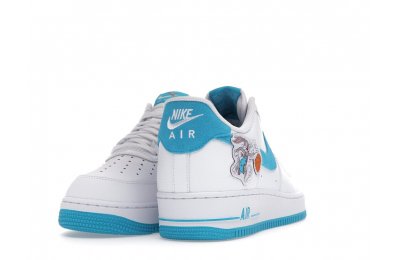 The Nike Air Force 1 Low Hare Space Jam references the Tune Squad’s team colors in its white tumbled leather upper with Light Blue Fury suede overlays. From there, graphics of Lola and Bugs Bunny appear on cut-out patches and woven tongue labels, completing the design.