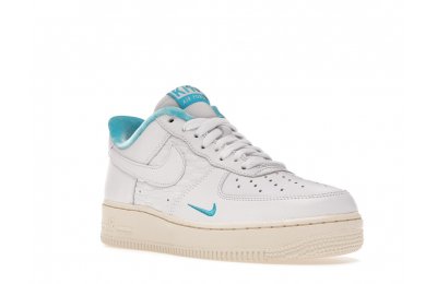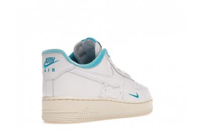 Launching as an in-store exclusive, the KITH x Nike Air Force 1 Low ‘Hawaii’ celebrates the grand opening of the New York retailer’s flagship store in Honolulu. KITH’s monogram pattern is debossed on the quarter panel of the white leather upper, lined in plush velvet in a light blue finish. The pastel hue is repeated on the sneaker’s branding elements, which include a forefoot mini-Swoosh, ‘Kith Air’ embroidered on the heel tab, and a ‘Kith Air Force 1’ tongue tag that incorporates a map of Hawaii. A cream-colored rubber cupsole enhances the shoe’s vintage aesthetic.