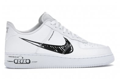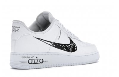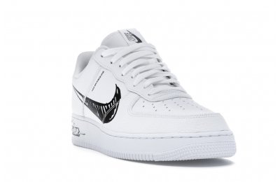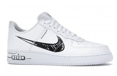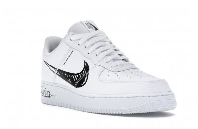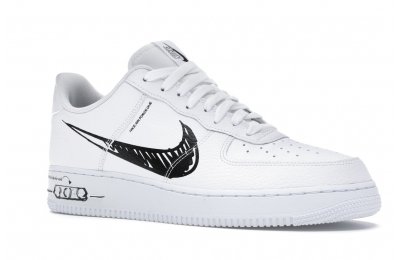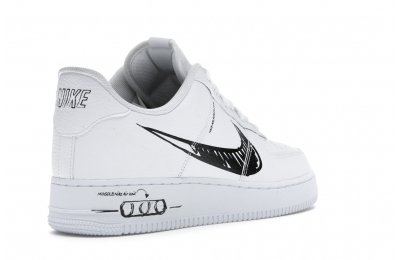 The Nike Air Force 1 Low Sketch White Black features a white leather upper, with a consistently light shade covering every panel, for a uniform look. From there, a Nike "Swoosh" in a large design and unique branding at the heels and insoles complete the design.