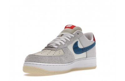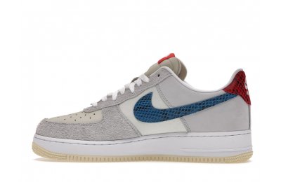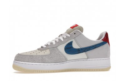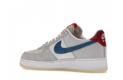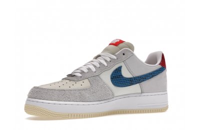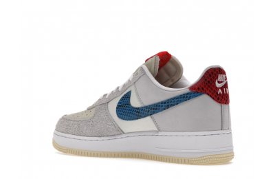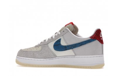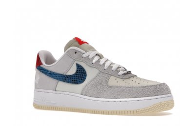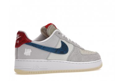 The Nike Air Force 1 Low Undefeated 5 On It features an assortment of textiles and sharp prints including faux snakeskin, Durabuck, suede, leather, and canvas. Similar to other releases in the Dunk vs. AF1 pack, Undefeated logos are prominent on the lateral heel and tongue label.