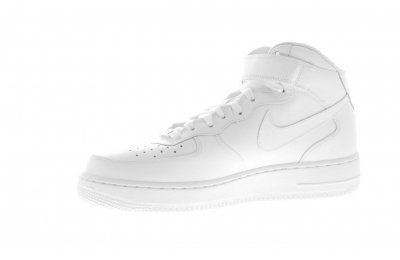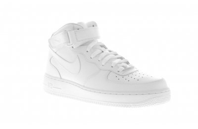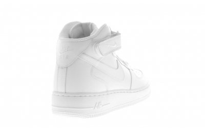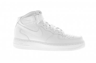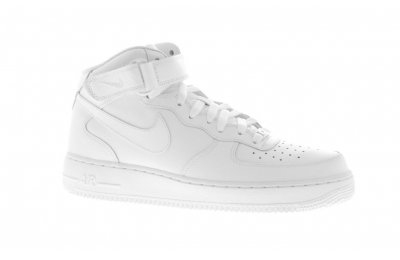 The Nike Air Force 1 Mid White '07 features a smooth white leather upper with matching overlays and Swooshes. From there, a velcro strap with Nike Swoosh embroidery and a matching Air sole completes the design.