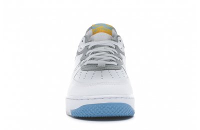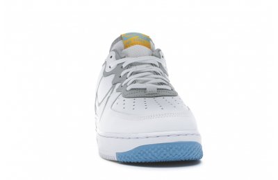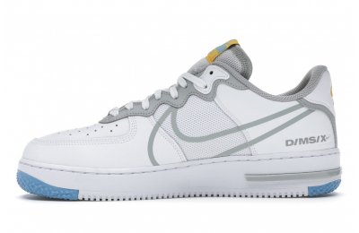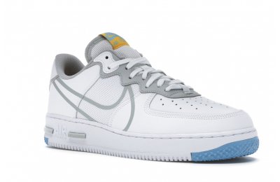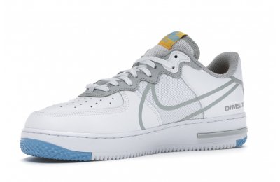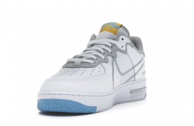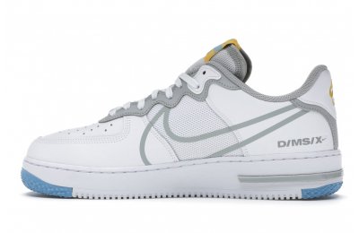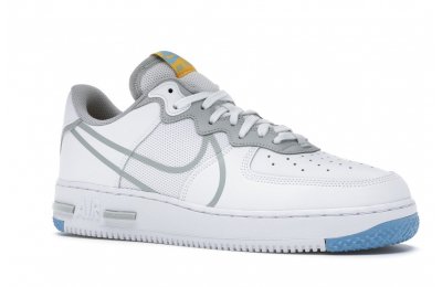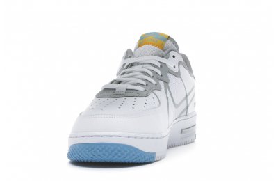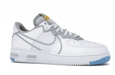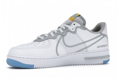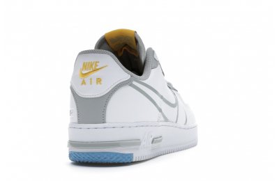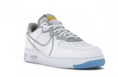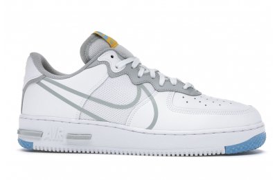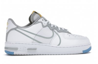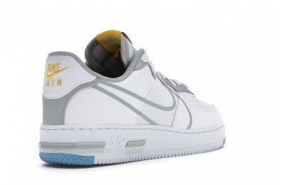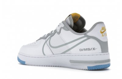 The Nike Air Force 1 React ‘Smoke Grey Gold’ updates the sneaker icon with upgraded tech and contemporary style, including a wavy eyestay, double-layered heel tab and cropped printed Swoosh. Mesh quarter panels provide breathable comfort, while a drop-in footbed features Nike React cushioning for a springy, responsive feel. The low-top rides on a revised foam midsole with a standard encapsulated Air sole unit in the heel.