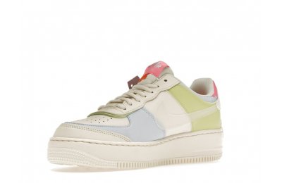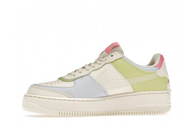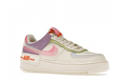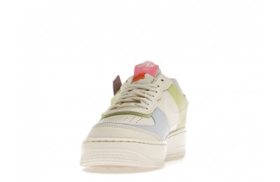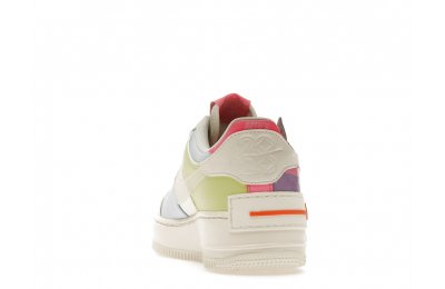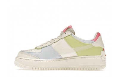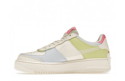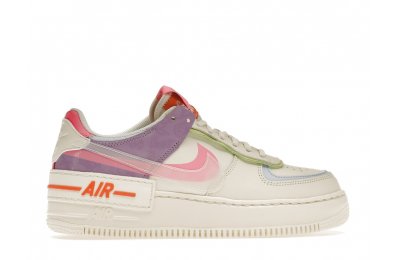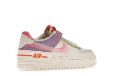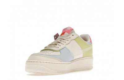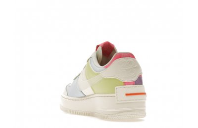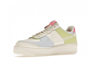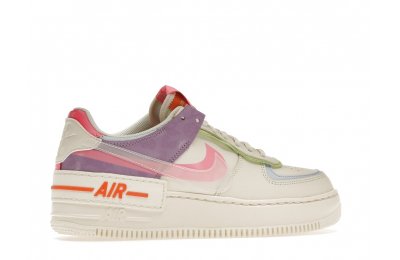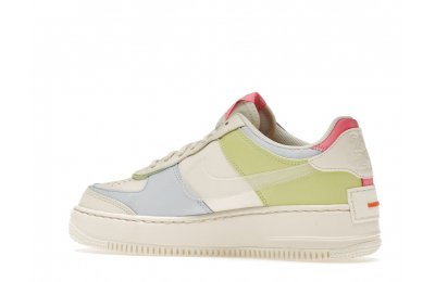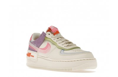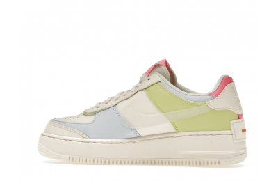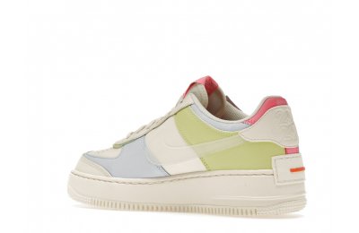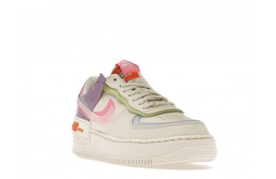 Released October 2019, the Nike Wmns Air Force 1 Shadow 'Pale Ivory' pays homage to women as forces of change with a pastel color collage. The multi-chromatic look includes 'Celestial Gold' and 'Tropical Twist' with a lavender Swoosh logo and midfoot panel. The Bruce Kilgore classic from 1982 gets treated with a doubled-up motif, including dual overlays, Nike branding and a higher foam midsole for extra cushioning. Underneath, pivot-point rubber traction is hollowed out for less weight.