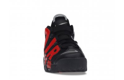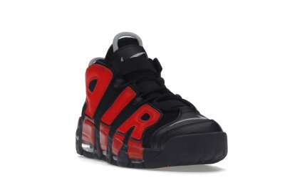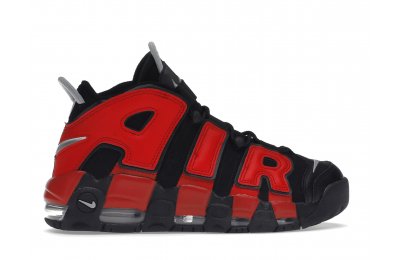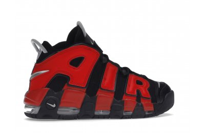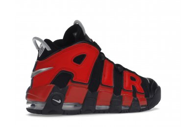 With oversized bright red "AIR" lettering inspired by the 90s pop art and graffiti, Nike Air More Uptempo Alternates navy red has a unique design. It features a black suede build complemented by leather overlays on the toe. Its red lettering extends to portions of the midsole, while it features navy fill and white borders on the medial side. Its heel features a transparent Nike Logo and Pippen brand.