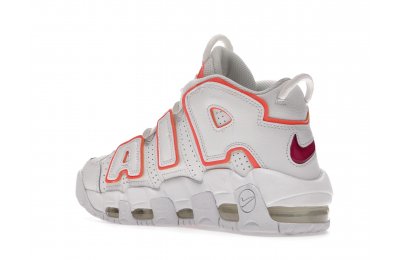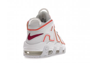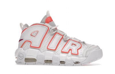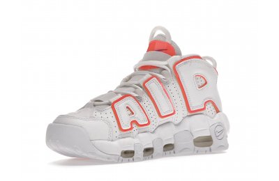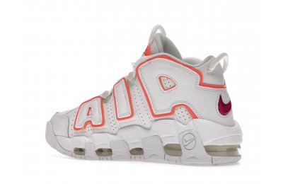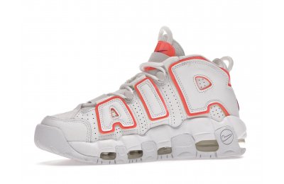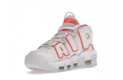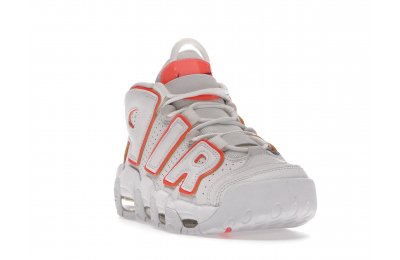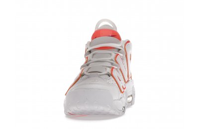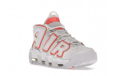 Nike Air More Uptempo Sunset Orange Unisex,The upper is all white leather and the iconic Air lettering on the side is outlined in orange, which brings a very bright visual experience compared to the white shoes. The white Swoosh on the toe is integrated into the upper and the orange tongue reflects the details. Followed by purple swoosh, to further improve the visual performance and perfect the design.