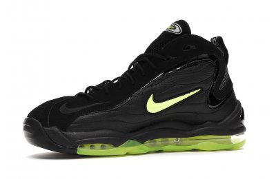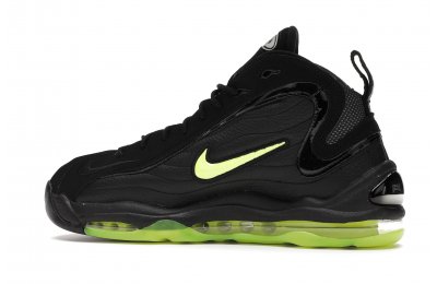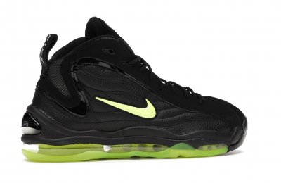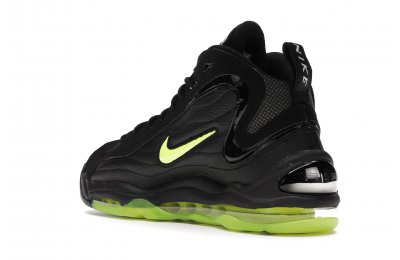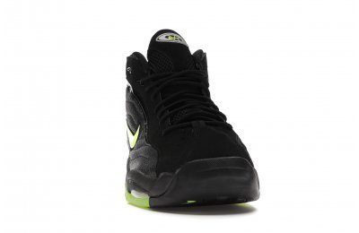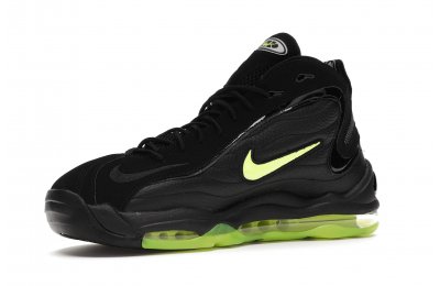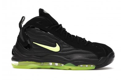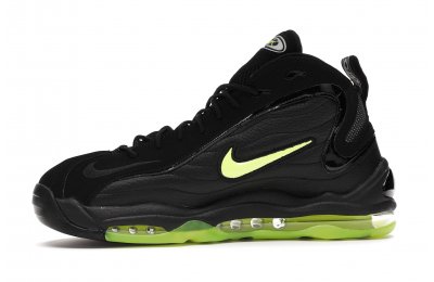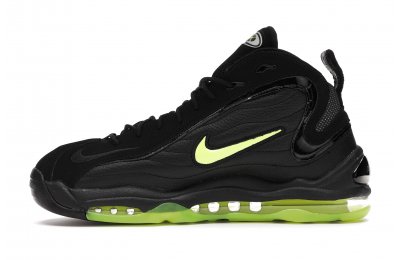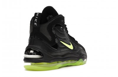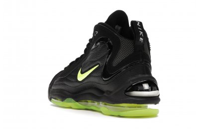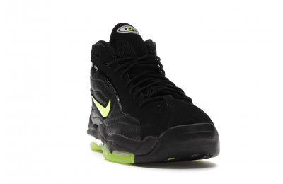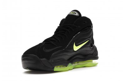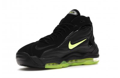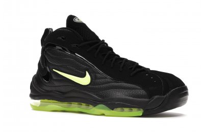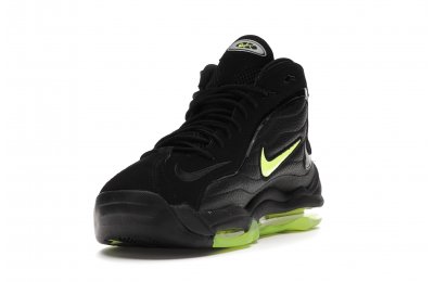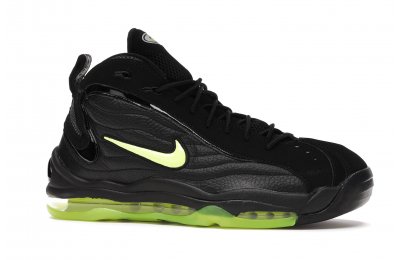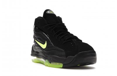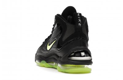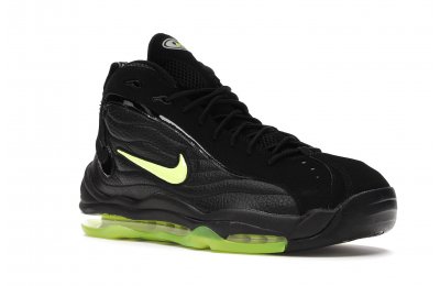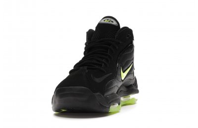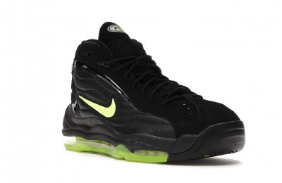 The Nike Air Total Max Uptempo ‘Black Volt’ brings back an OG colorway of a vintage hoops shoe first released in 1997. The one-to-one build recreates the look of the original, featuring a stitched black leather upper accented with a chrome heel piece and Swoosh branding in Nike’s signature Volt hue. The same fluorescent color is repeated on the full-length Max Air unit and rubber outsole, equipped with a classic herringbone tread for superior grip.