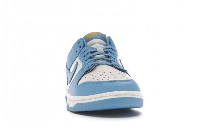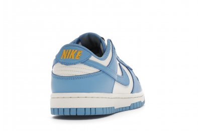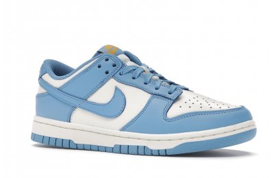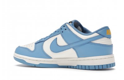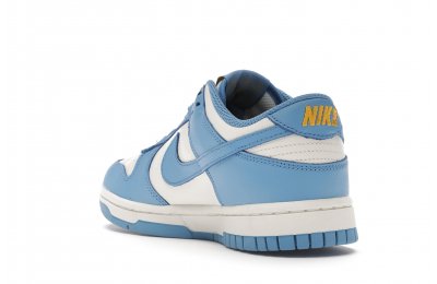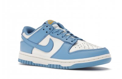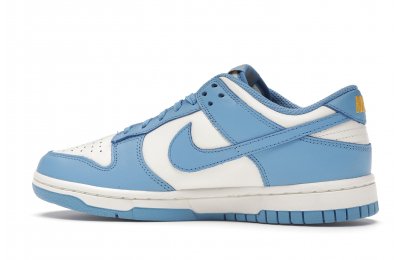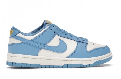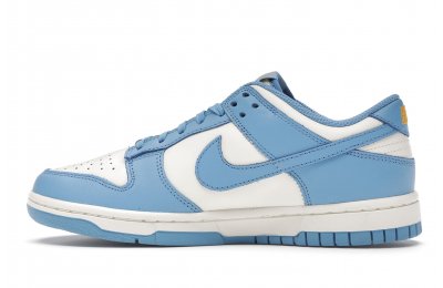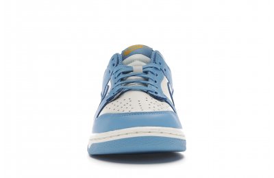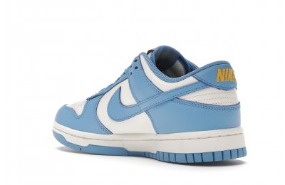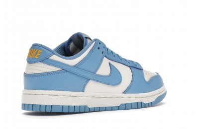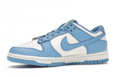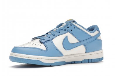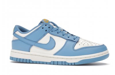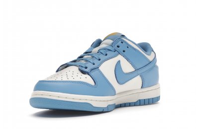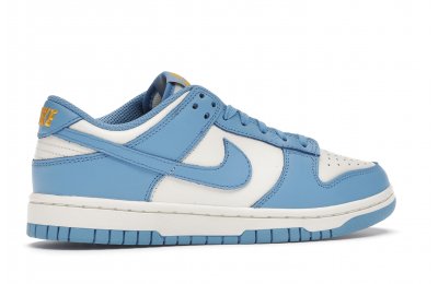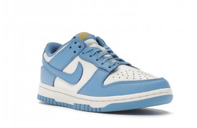 Nike paid homage to the West Coast with the women's Nike Dunk Low Coast (W). The Coast colorway is reminiscent of UCLA Bruin school colors, prominently featuring light blue, white, and yellow. White and light blue leather comprise the upper of the Nike Dunk Low Coast (W), with white on the vamp and medial panels and light blue on the overlay and Swoosh. Hits of yellow are present in the Nike Air branding on the tongue and heel. A white midsole and light EVA outsole complete the design.