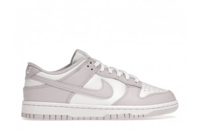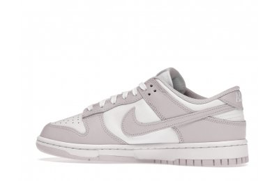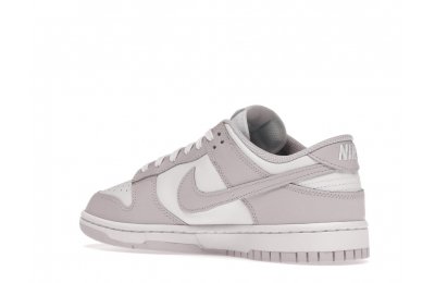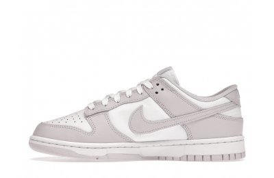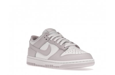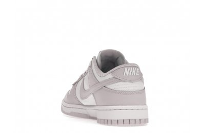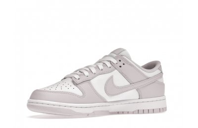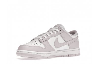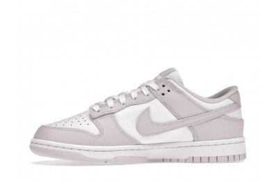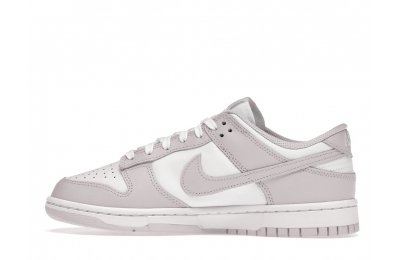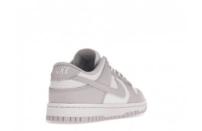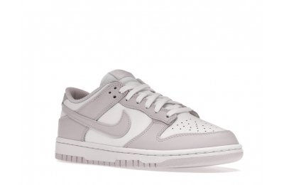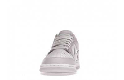 The women's Nike Dunk Low Venice (W) features a smooth white leather upper with light violet overlays and Swooshes. From there, matching woven tongue labels and soles complete the design.