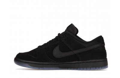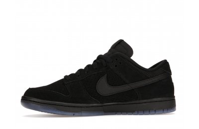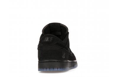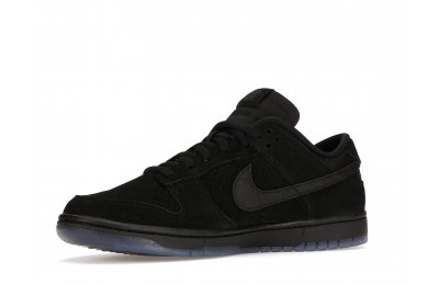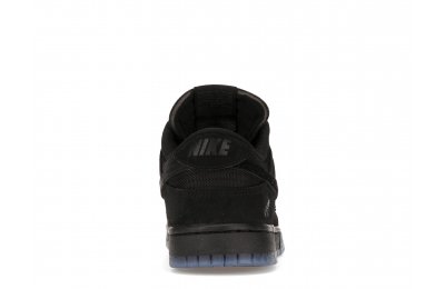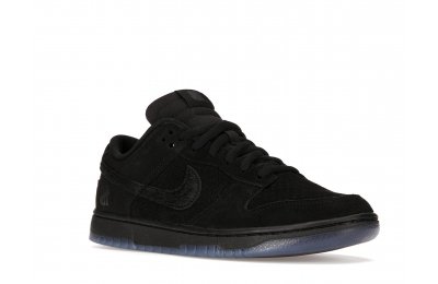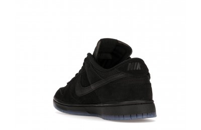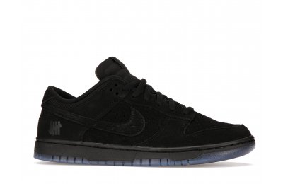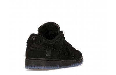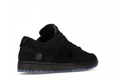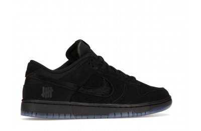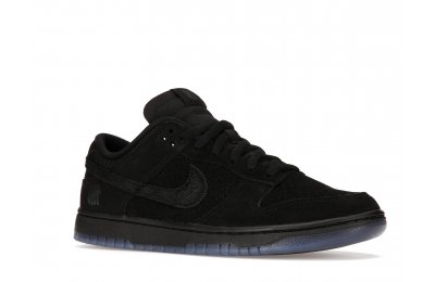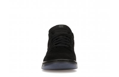The Nike Dunk Low Undefeated 5 On It Black, arrives with a black perforated Durabuck upper with matching suede overlays and Swooshes. Undefeated's signature tally mark insignia appears at the heel and on each woven tongue label. A dark blue, semi-translucent outsole adds a slight coloration to the triple-black design.