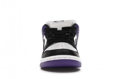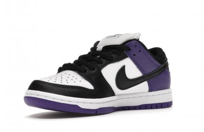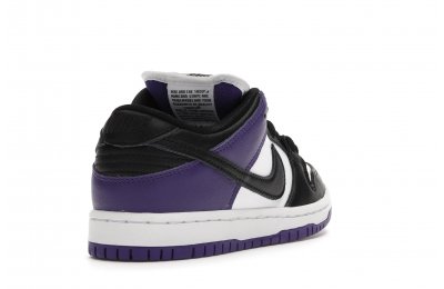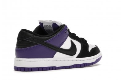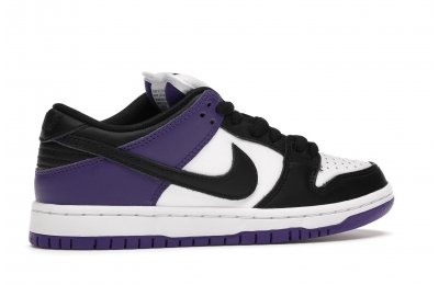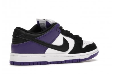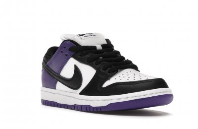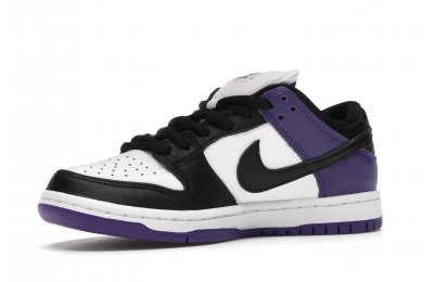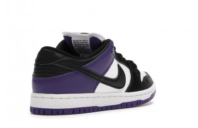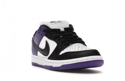 This skateboarding (SB) Nike SB Dunk Low Court Purple delivers a straightforward colorway of the classic silhouette. The Nike SB Dunk Low Court Purple uses a white leather upper with contrasting black overlays on the forefoot, eyestay, and collar. Court purple makes its appearance on the heel overlay, which is matched by the rubber outsole that features a grippy traction pattern originally designed for basketball courts. A Zoom Air unit in the heel and a padded tongue are included for maximum comfort.