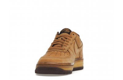 The Nike Air Force 1 Wheat is very similar to the Air Force 1 Flax in the sense that it has all of the attributes you would look for in a pair of classic wheat Timbs. Luxe wheat nubuck smothers the upper, while hits of dark brown on the tongue and a silky lining add contrast. A gum midsole, dark brown outsoles, and wheat laces add the finishing touches to this fall masterpiece.